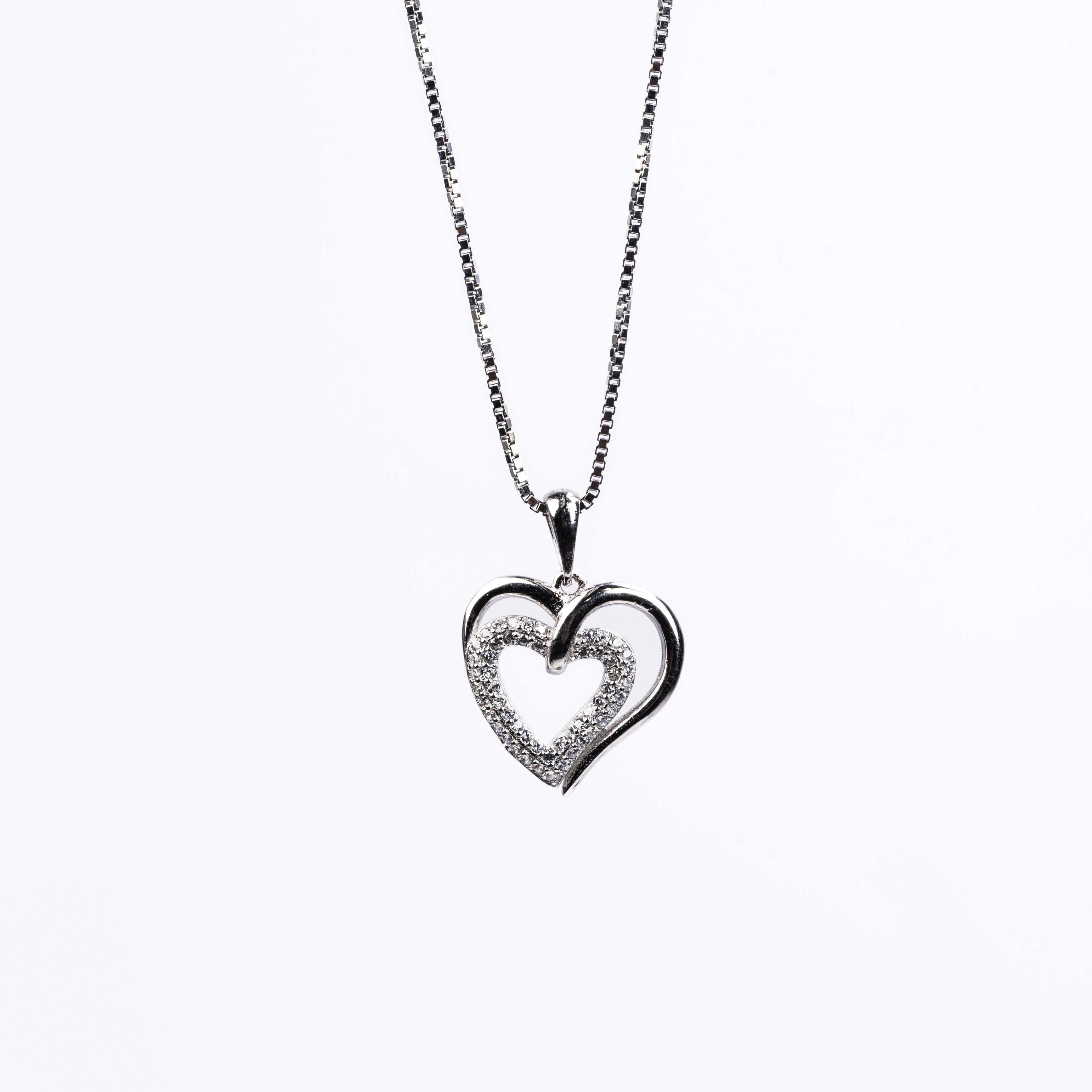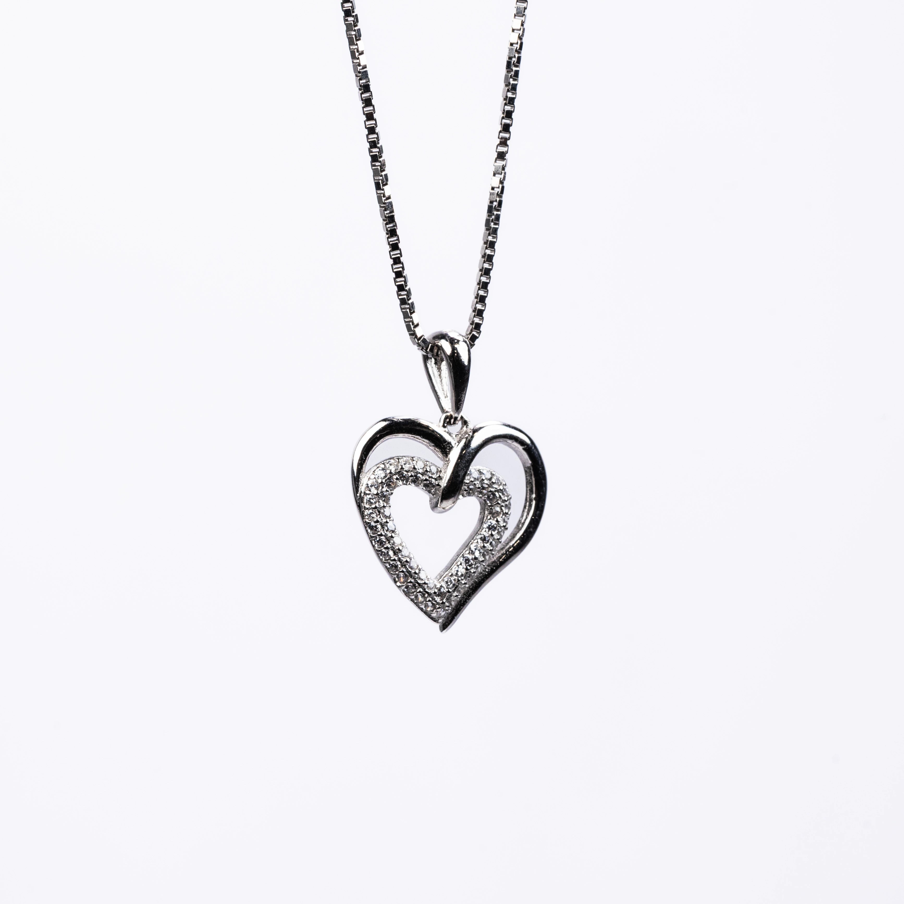 Introducing the Eternal Embrace Heart Necklace, a beautifully sculpted symbol of lasting connection. This pendant features two interlocking hearts—one adorned with shimmering pavé stones, the other polished to a sleek, mirror-like shine—creating a perfect balance of brilliance and modern elegance.