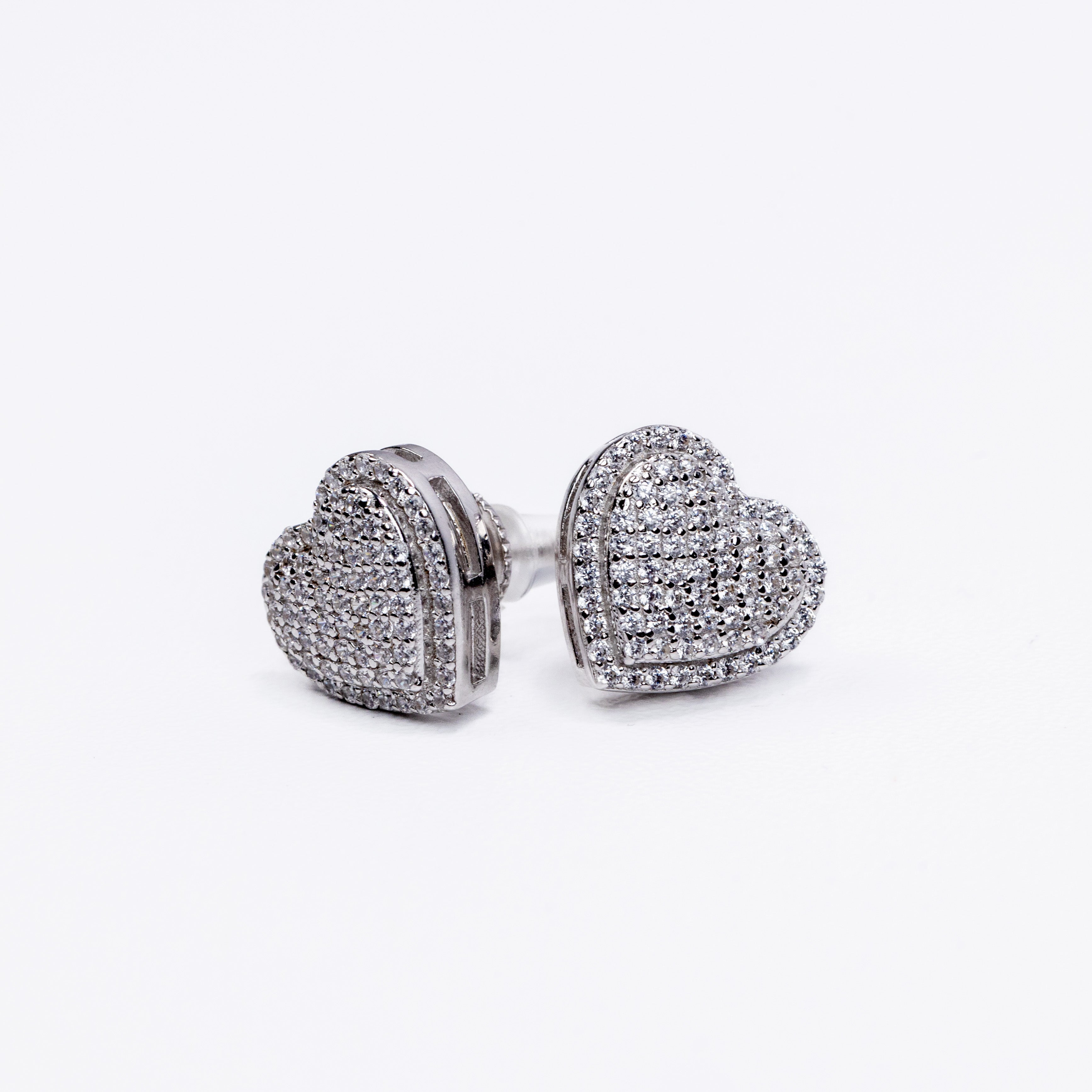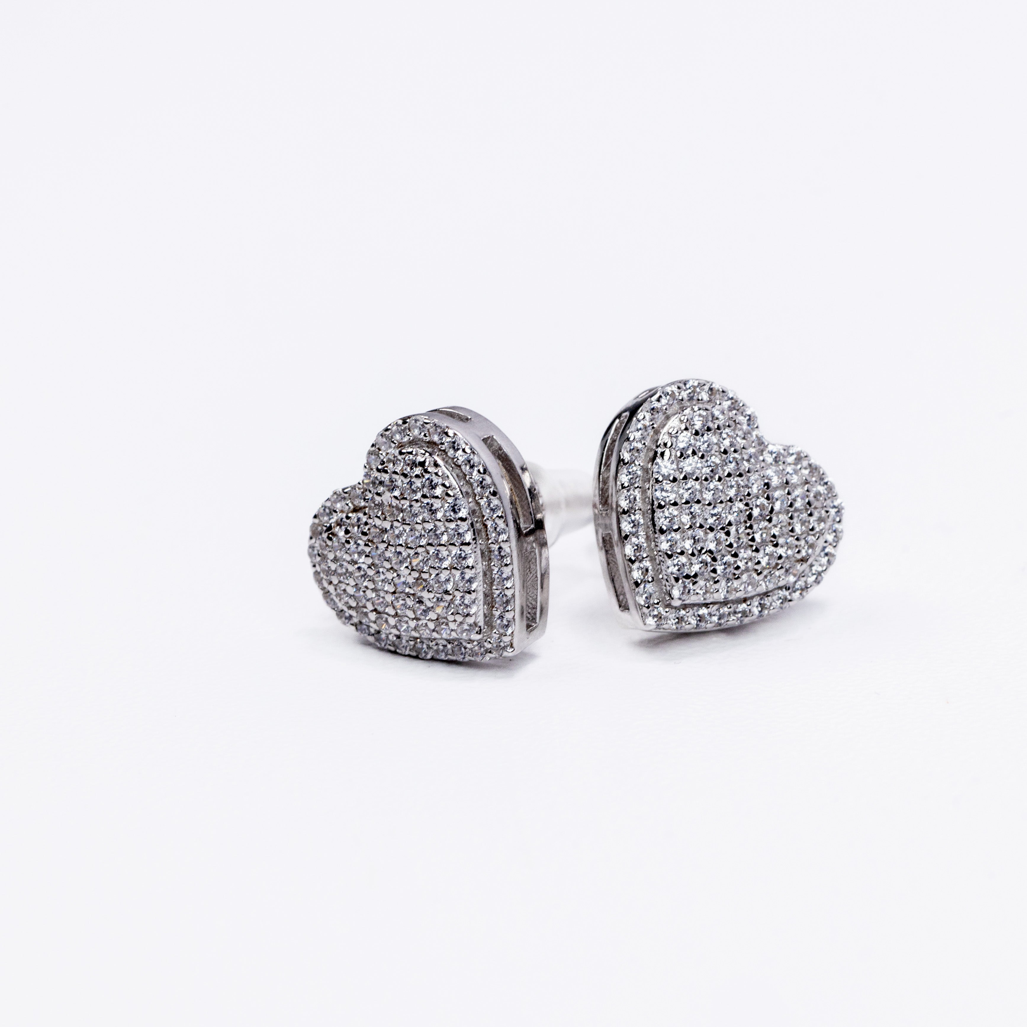 Radiate pure elegance with the Eternal Spark Heart Studs, a dazzling expression of love and luxury. These beautifully sculpted heart-shaped earrings feature a fully pavé-set surface, shimmering with dozens of meticulously placed stones that catch the light from every angle. The layered heart design adds depth and dimension, while the polished metal frame enhances the brilliance with a refined, modern finish.