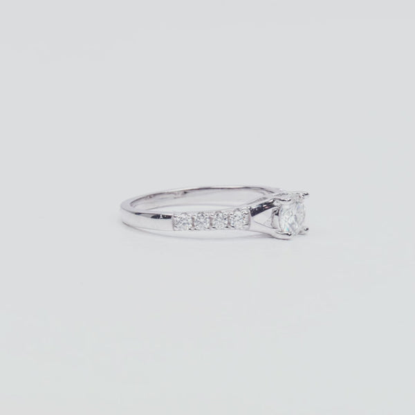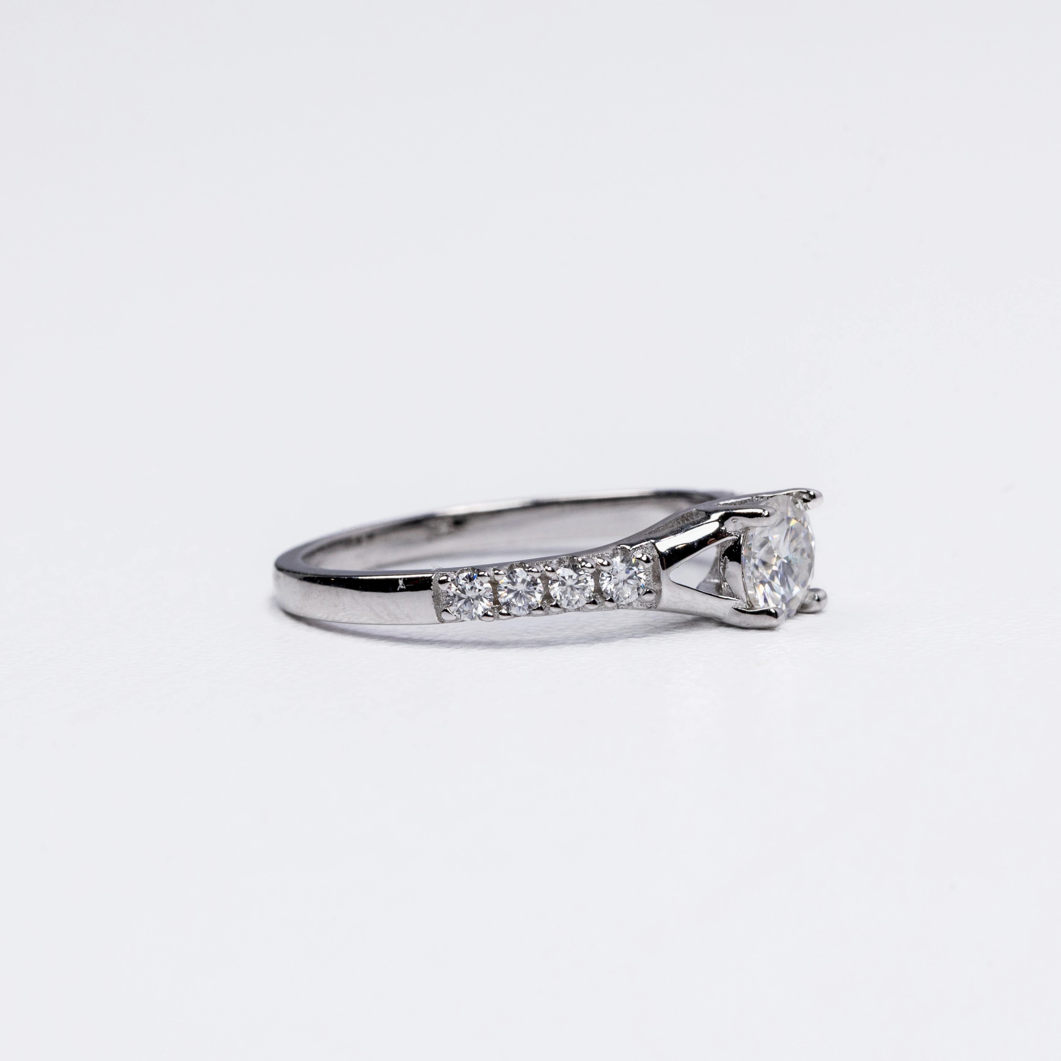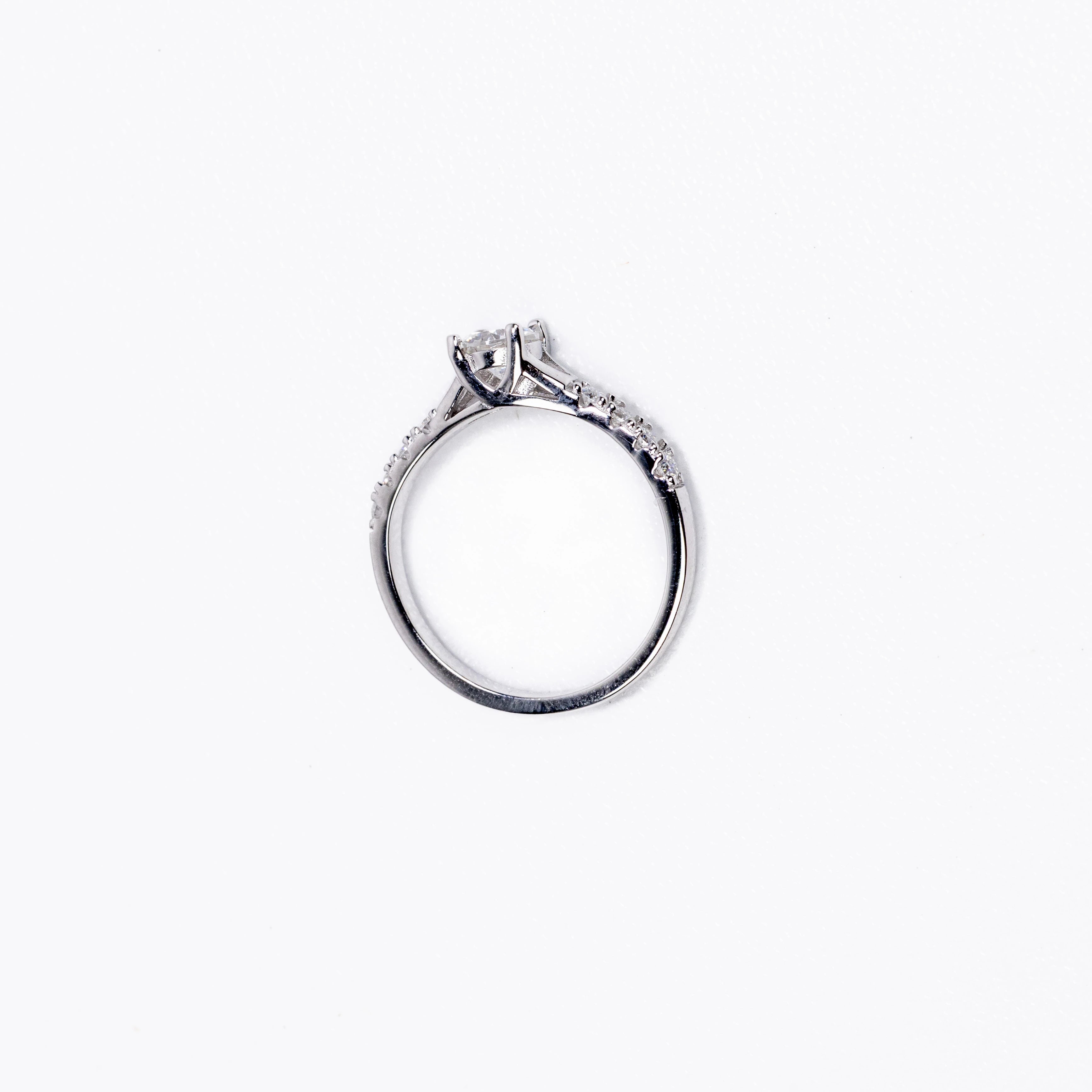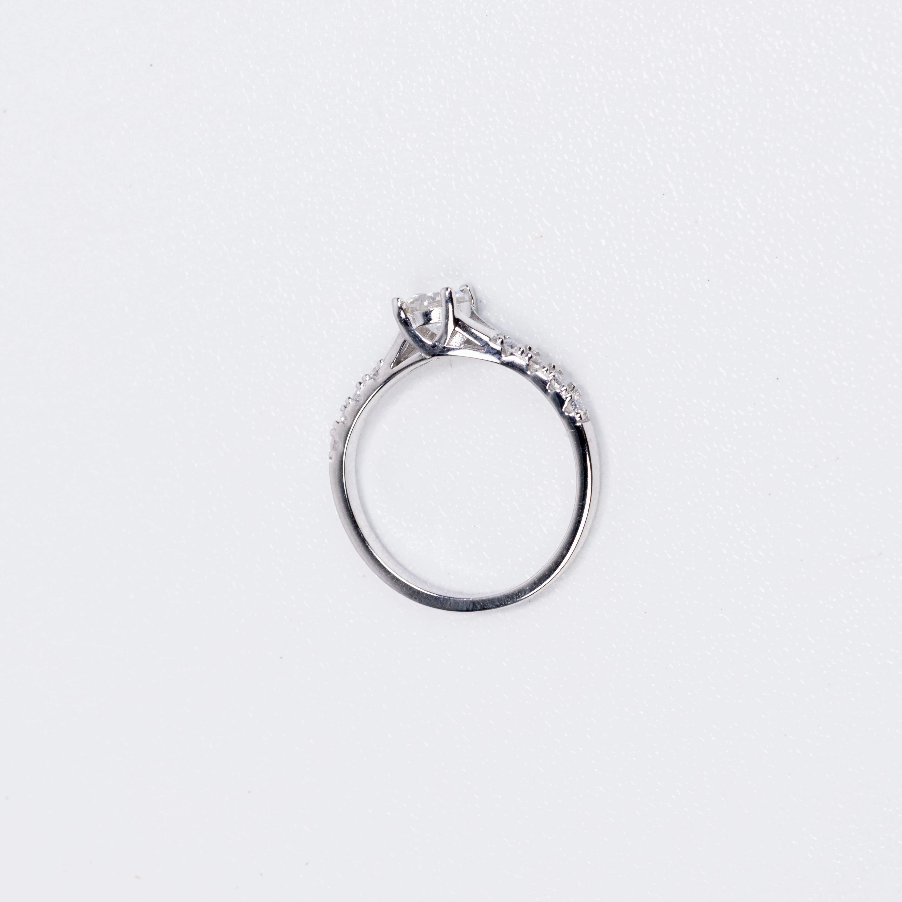 The classic and timeless design, with the center stone highlighted as the focal point while the side stones enhance brilliance without overpowering it. It’s a style commonly used for engagement rings due to its elegance and balanced proportions.